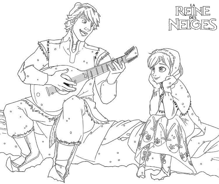 coloriage à imprimer gratuit : kristoff et anna deviennent amis