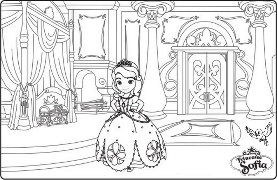 coloriage à imprimer gratuit : la chambre de la princesse sofia