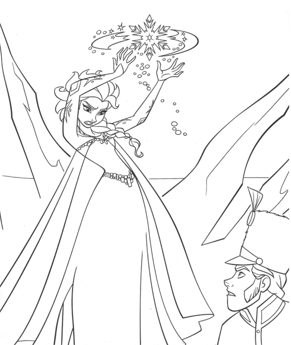 coloriage à imprimer gratuit : la reine des neiges en plein combat