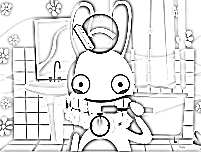coloriage à imprimer gratuit : lapin cretin se brossant les dents