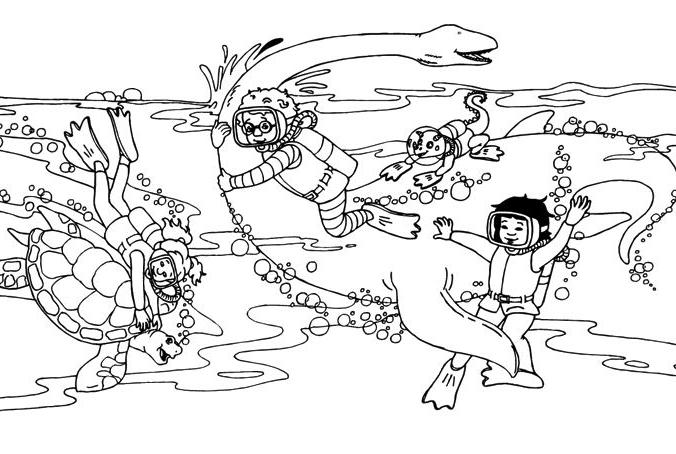 coloriage à imprimer gratuit : le bus magique les enfants font de la plongee