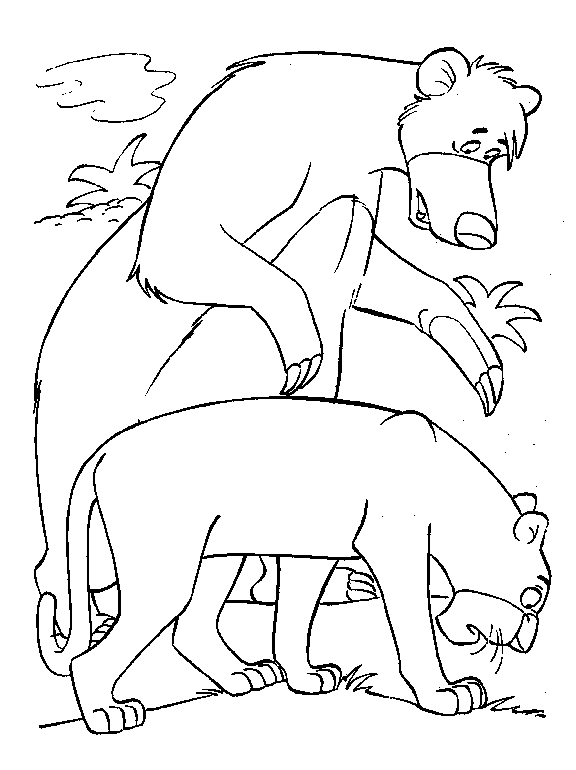coloriage à imprimer gratuit : le livre de la jungle baloo et bagheera