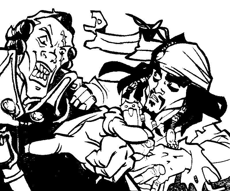 coloriage à imprimer gratuit : le pirate des caraibes et le baron