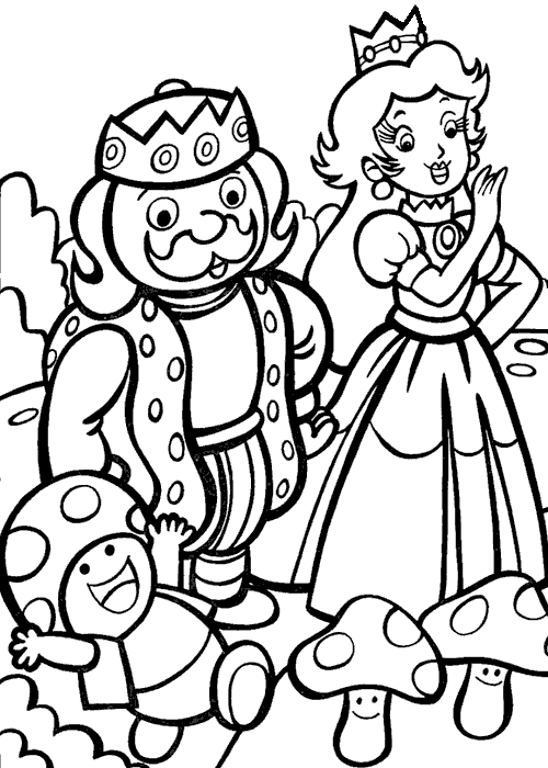 coloriage à imprimer gratuit : le roi et la princesse peach