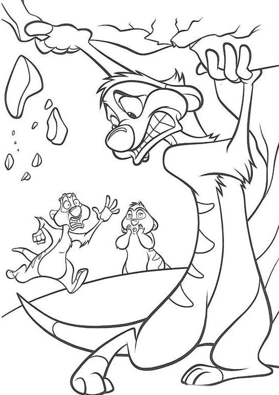 coloriage à imprimer gratuit : le roi lion timon et la terre tombe