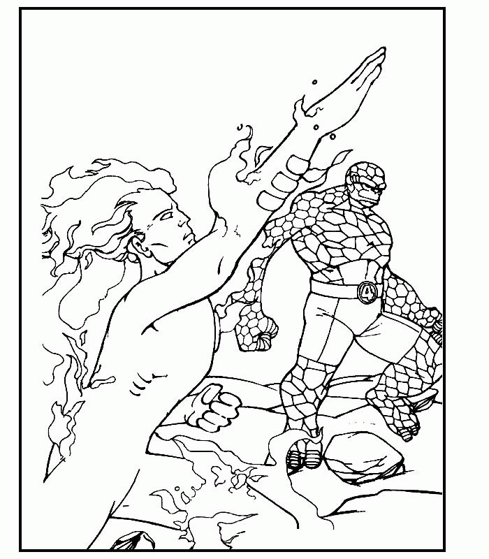 coloriage à imprimer gratuit : les quatre fantastiques la torche et la chose