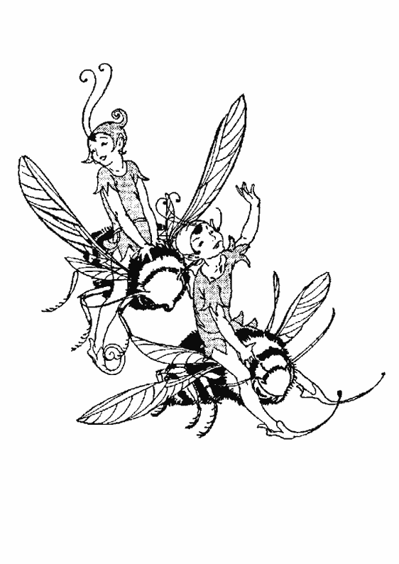 coloriage à imprimer gratuit : lutins sur abeilles