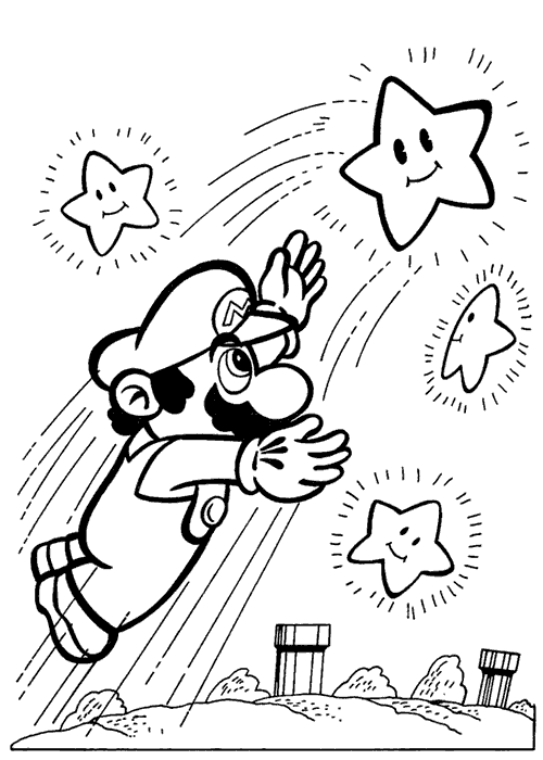 coloriage à imprimer gratuit : mario s envole dans les etoiles
