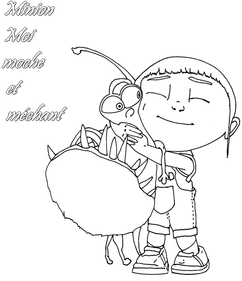 coloriage à imprimer gratuit : minion agnes fait des calins