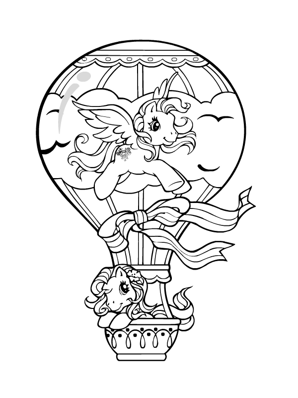 coloriage à imprimer gratuit : mongolfiere petit poney