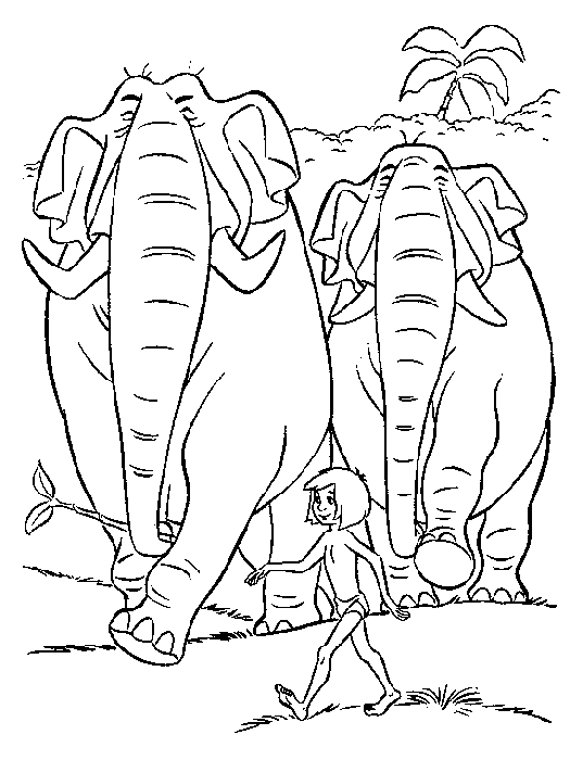 coloriage à imprimer gratuit : mowgli et les elephants