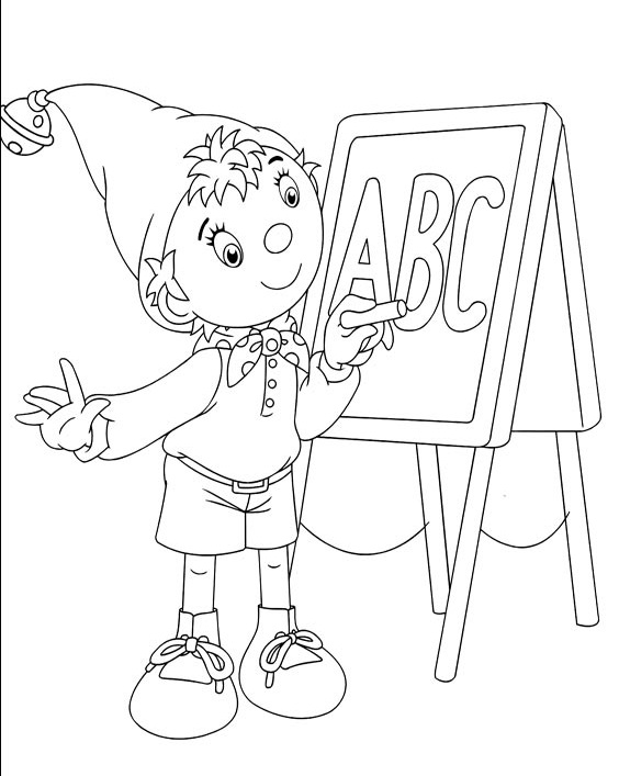 coloriage à imprimer gratuit : oui oui ecrit l alphabet sur le tableau