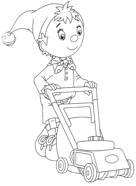 coloriage à imprimer gratuit : oui oui passe la tondeuse