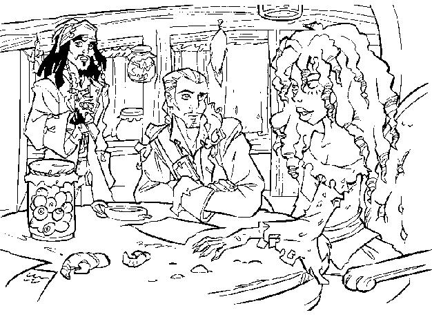 coloriage à imprimer gratuit : pirate des caraibes jack william et anamaria