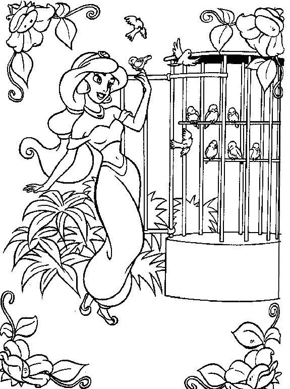 coloriage à imprimer gratuit : princesse jasmine et ses oiseaux