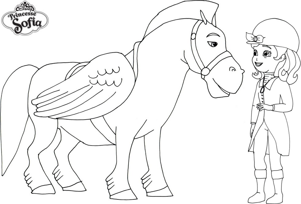 coloriage à imprimer gratuit : princesse sofia et minibus le cheval aile
