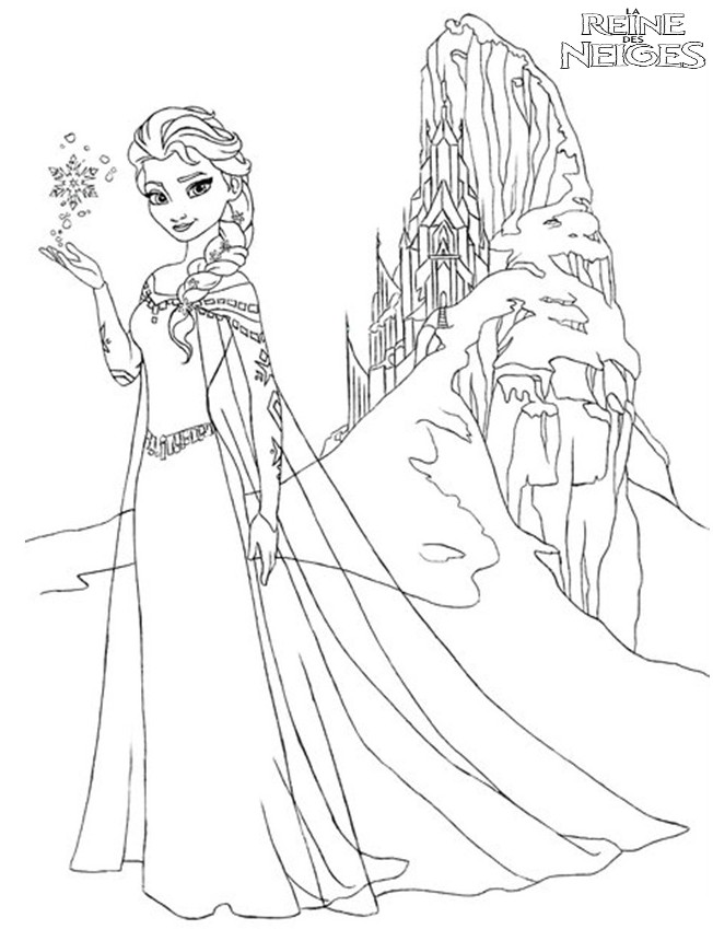 coloriage à imprimer gratuit : reine des neiges elsa heureuse dans son palais