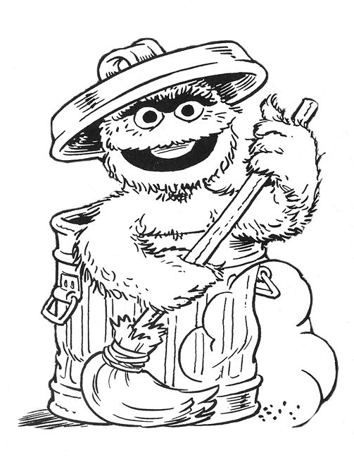 coloriage à imprimer gratuit : rue sesame dans la poubelle