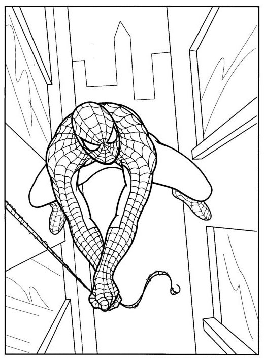 coloriage à imprimer gratuit : spiderman au bout du fil
