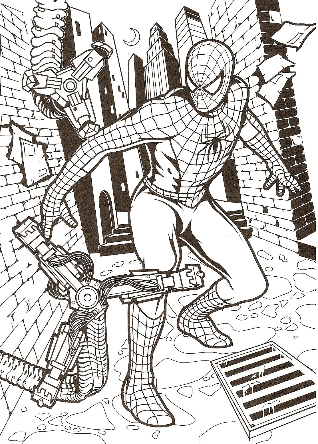 coloriage à imprimer gratuit : spiderman contre les machines