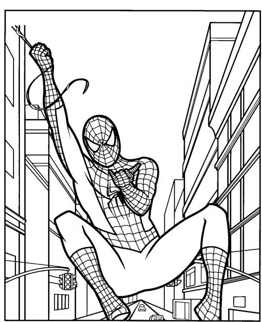 coloriage à imprimer gratuit : spiderman dans le ciel