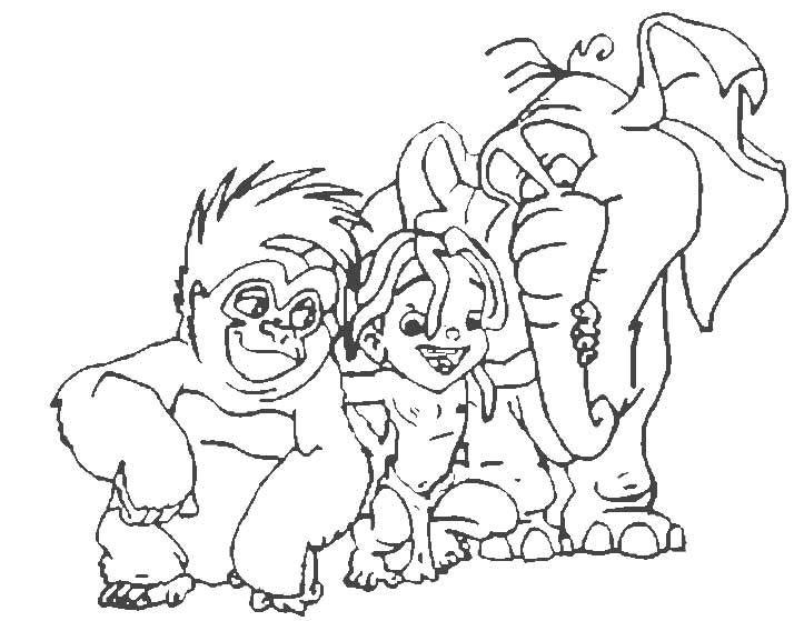 coloriage à imprimer gratuit : tarzan avec ses amis