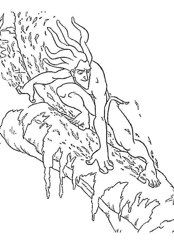 coloriage à imprimer gratuit : tarzan surfe sur les arbres