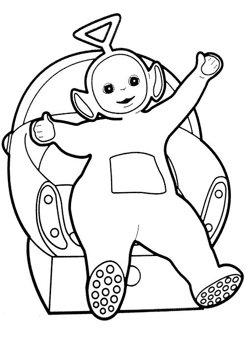 coloriage teletubbies Tinky Winky dans son fauteuil
