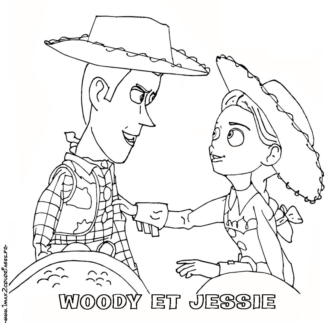 coloriage à imprimer gratuit : toy story 3 woody et jessie