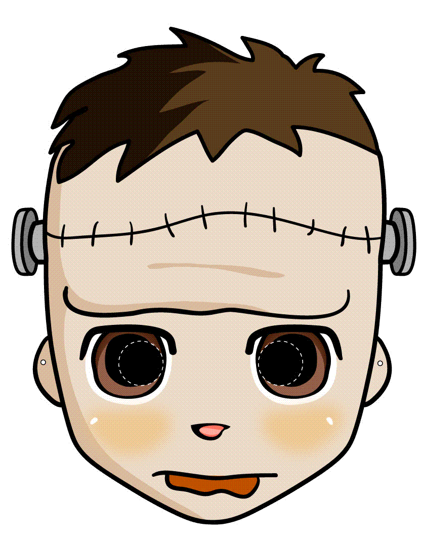 Découper le dessin, des ronds dans les yeux pour permettre à l'enfant de voir à travers le masque.
