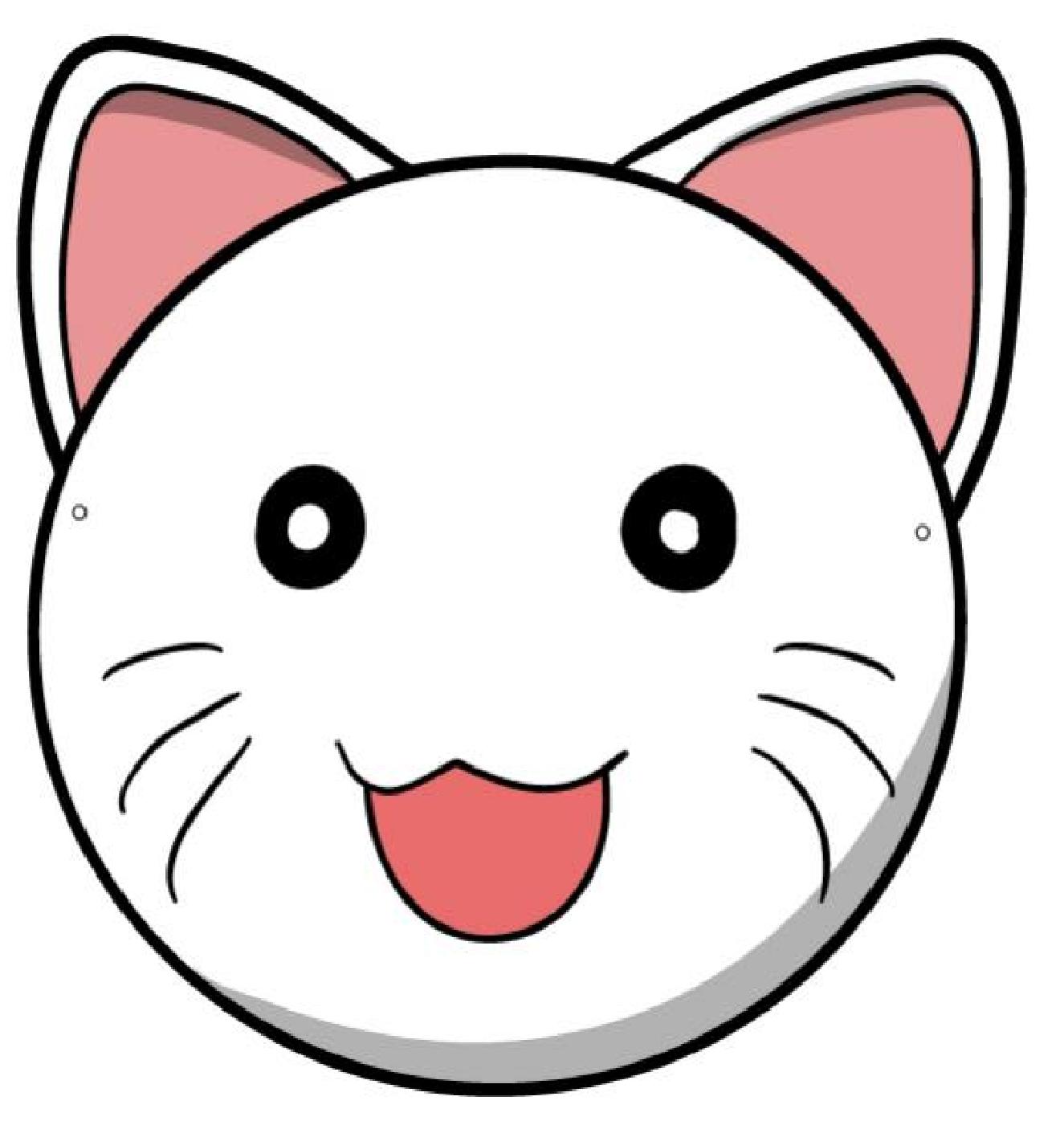 Découper le dessin, des ronds dans les yeux pour permettre à l'enfant de voir à travers le masque.