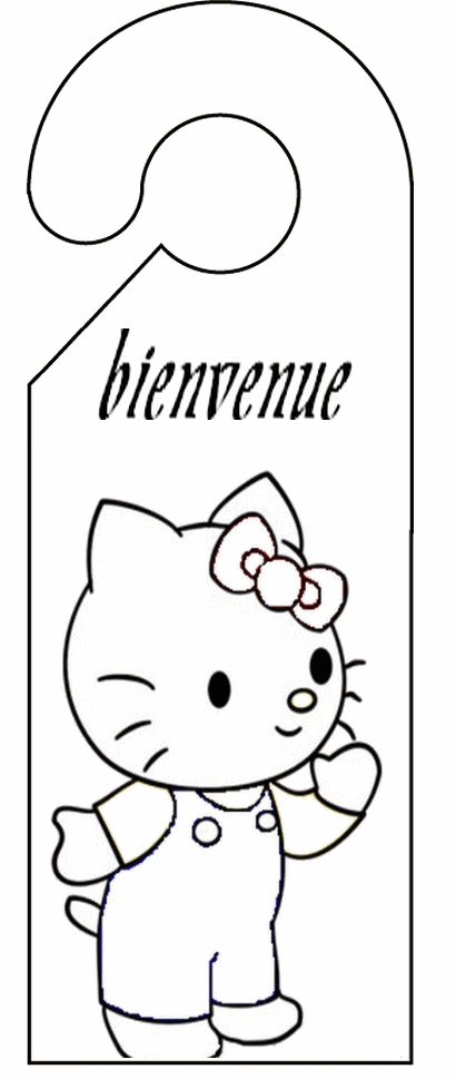 découpage à imprimer gratuit : pancarte de porte peter hello kitty bienvenue
