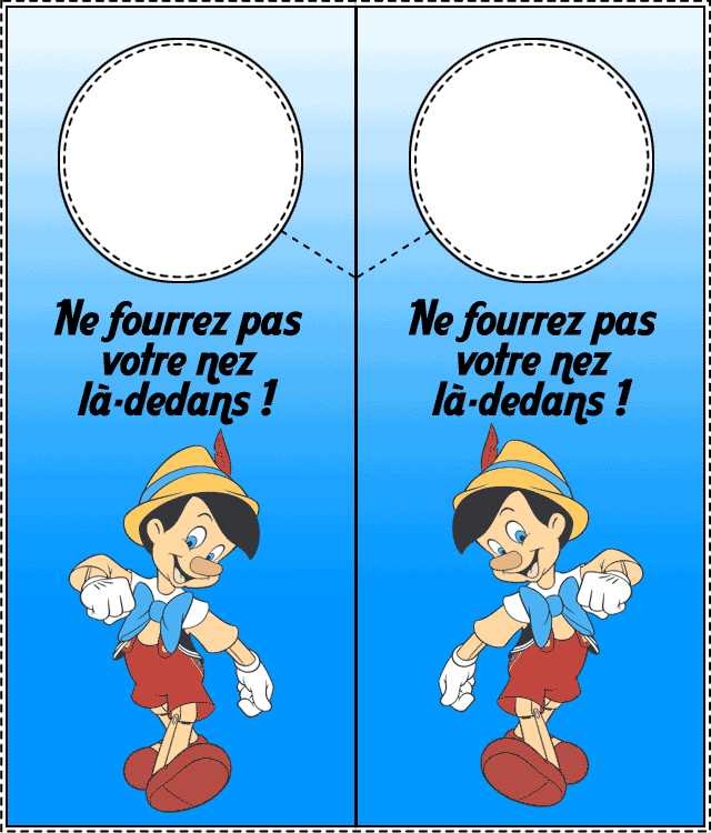 découpage à imprimer gratuit : pancarte de porte pinocchio