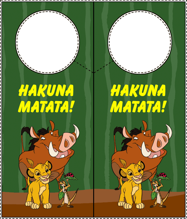 découpage à imprimer gratuit : pancarte de porte simba le lion hakuna matata