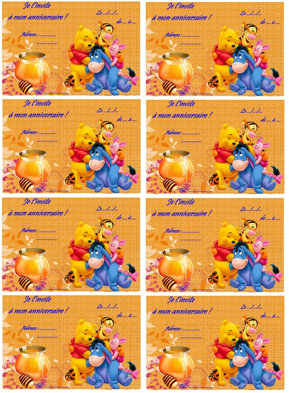 carton invitation winnie l ourson et ses amis