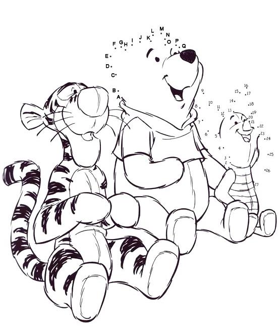 coloriage point a point imprimer gratuit : Winnie et ses amis regardent le ciel
