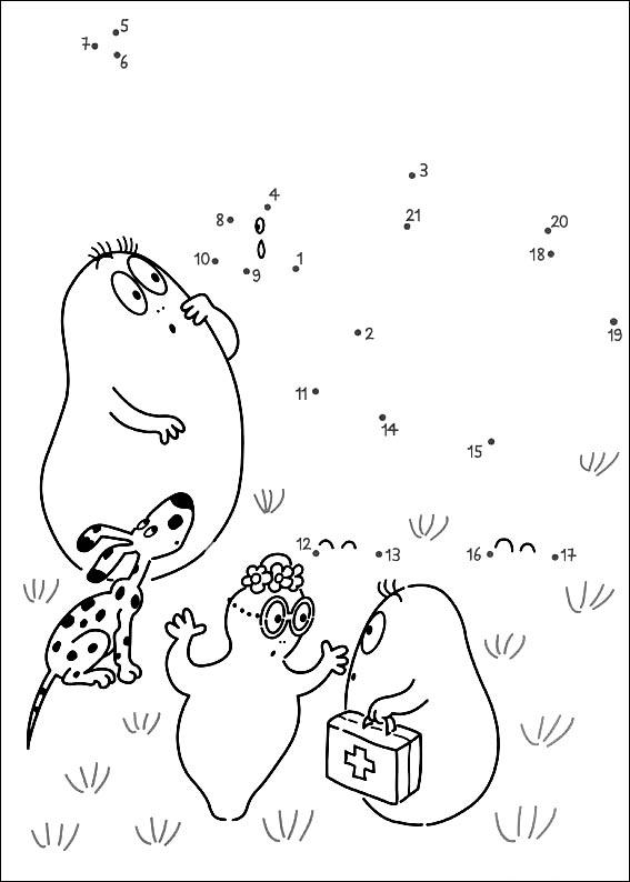 coloriage point a point imprimer gratuit : famille barbapapa dans le pre