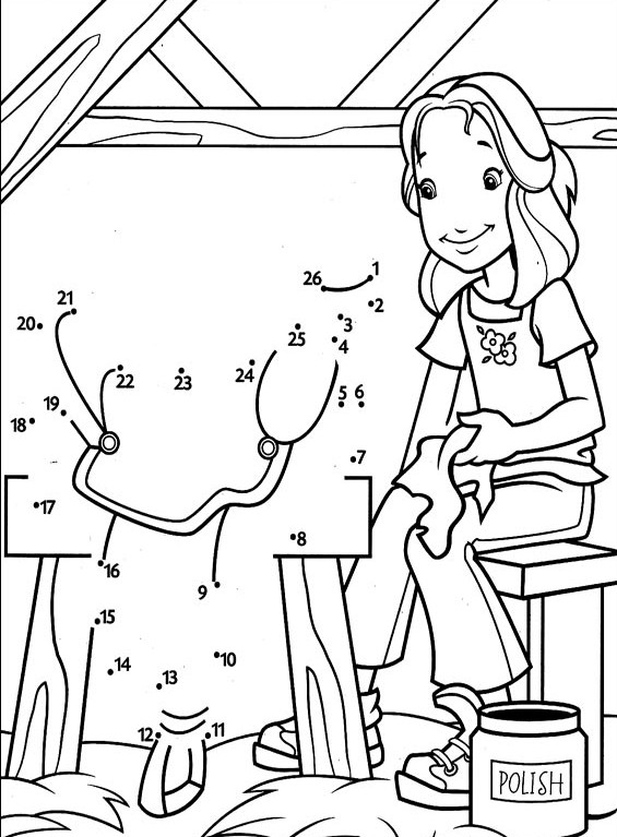 coloriage point a point imprimer gratuit : la fillette et sa selle