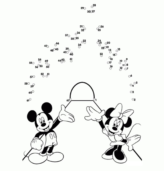 coloriage point a point imprimer gratuit : mickey et minnie bienvenue