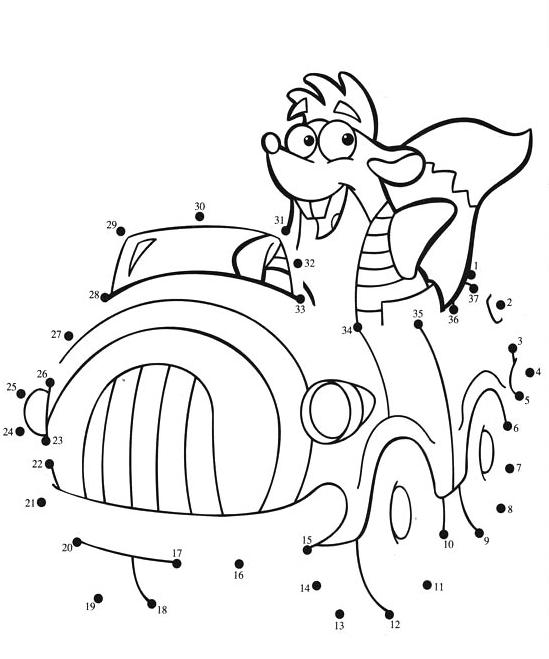 coloriage point a point imprimer gratuit : milo l ecureuil dans sa voiture