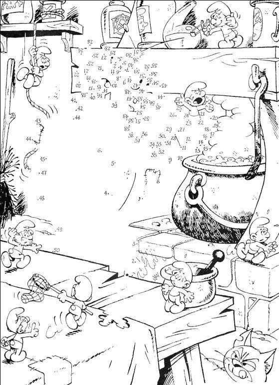 coloriage point a point imprimer gratuit : schtroumpf chez gargamel