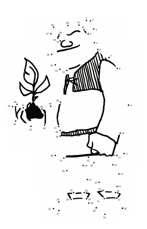 coloriage point a point imprimer gratuit : shrek tient une plante