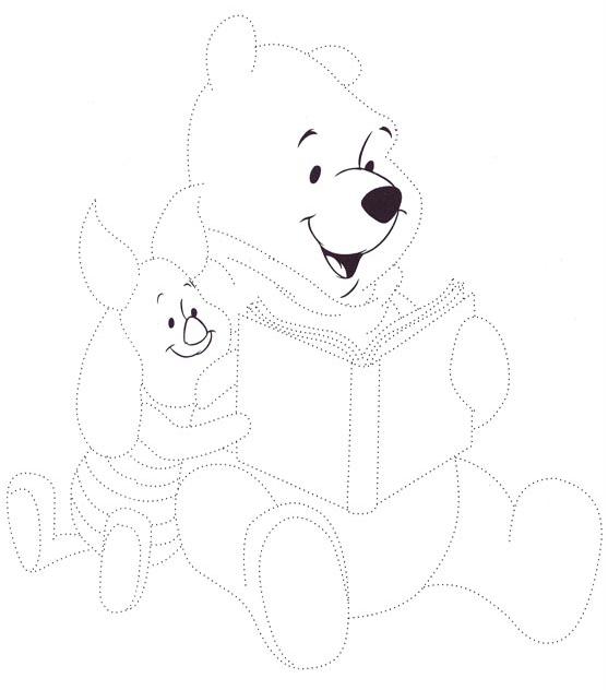 coloriage point a point imprimer gratuit : winnie et porcinet lisent un livre