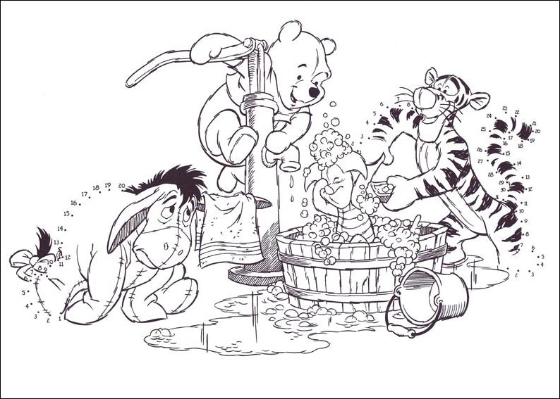 coloriage point a point imprimer gratuit : winnie et ses amis lavent porcinet