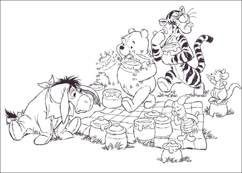 coloriage point a point imprimer gratuit : winnie et ses amis pique niquent