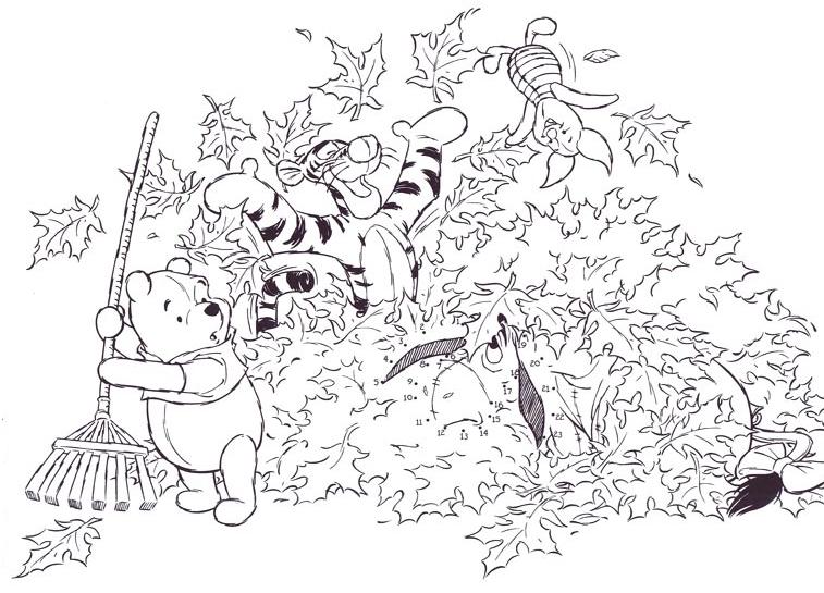 coloriage point a point imprimer gratuit : winnie et ses amis sous les feuilles