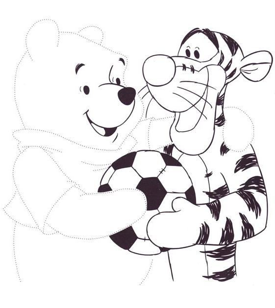 coloriage point a point imprimer gratuit : winnie et tigrou jouent au foot
