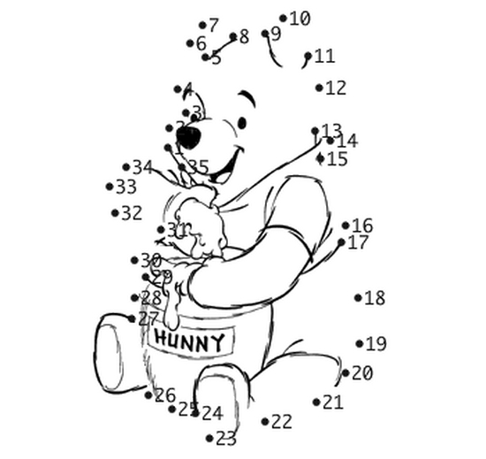coloriage point a point imprimer gratuit : winnie fait le gourmand