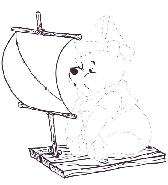 coloriage point a point imprimer gratuit : winnie sur son radeau